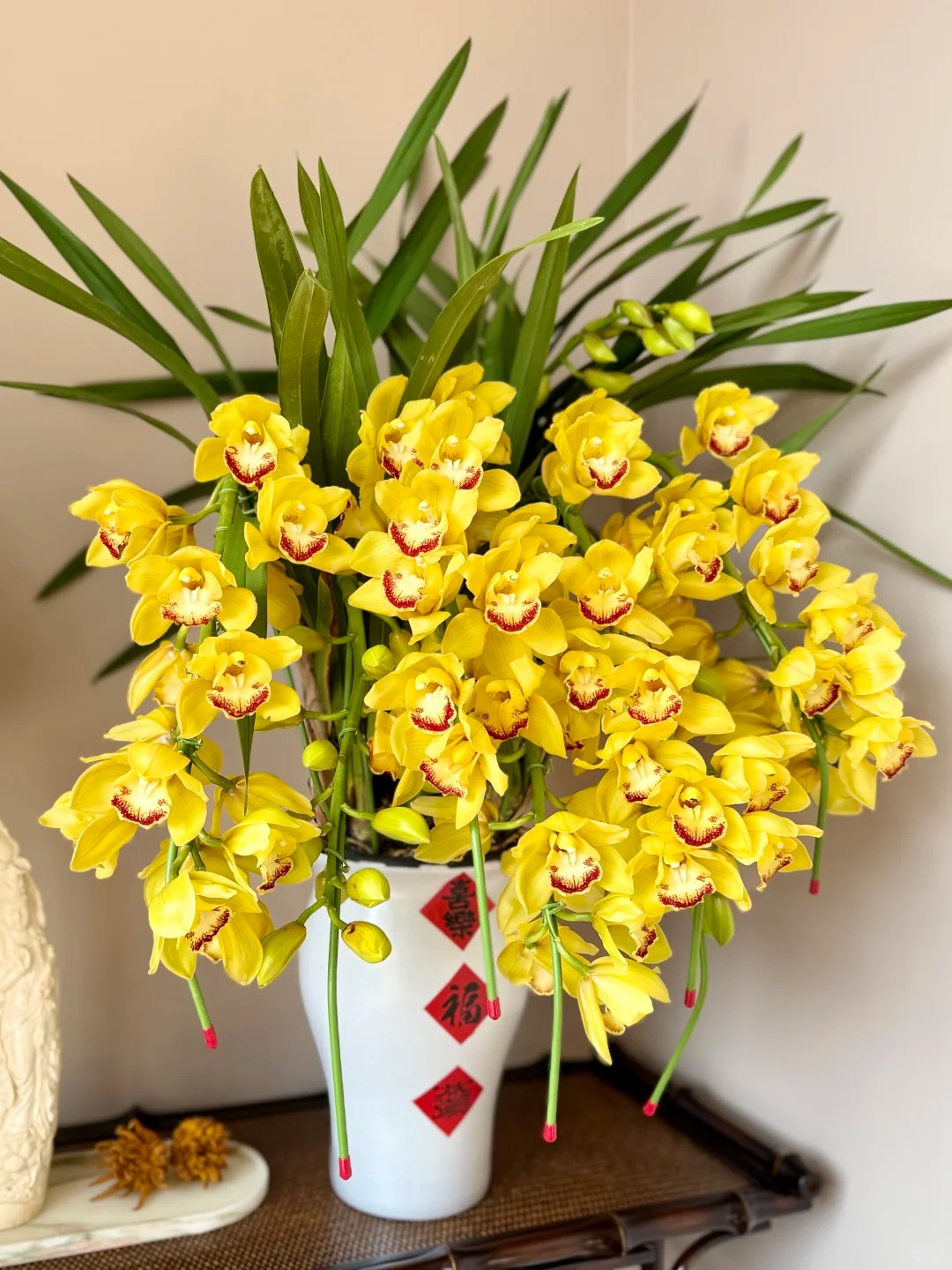 Trong quan niệm Á Đông, địa lan tượng trưng cho sự đủ đầy, bình an, cao quý mà vẫn tinh tế. Nhiều người còn gọi những chùm hoa to, vàng óng như “dây lồng đèn”, mỗi bông là một lời chúc an khang cho năm mới. Vì thế, chưng một chậu địa lan trong nhà những ngày Tết không chỉ là chơi hoa, mà còn là cách tự gửi lời chúc may mắn cho tổ ấm của mình.