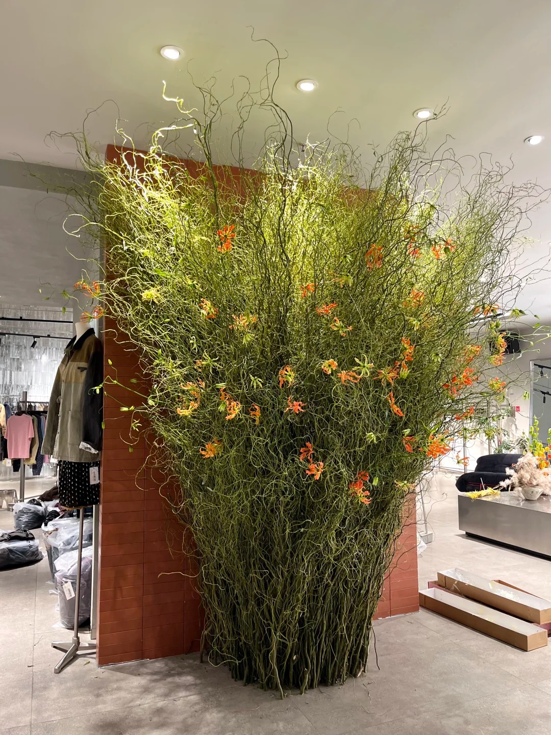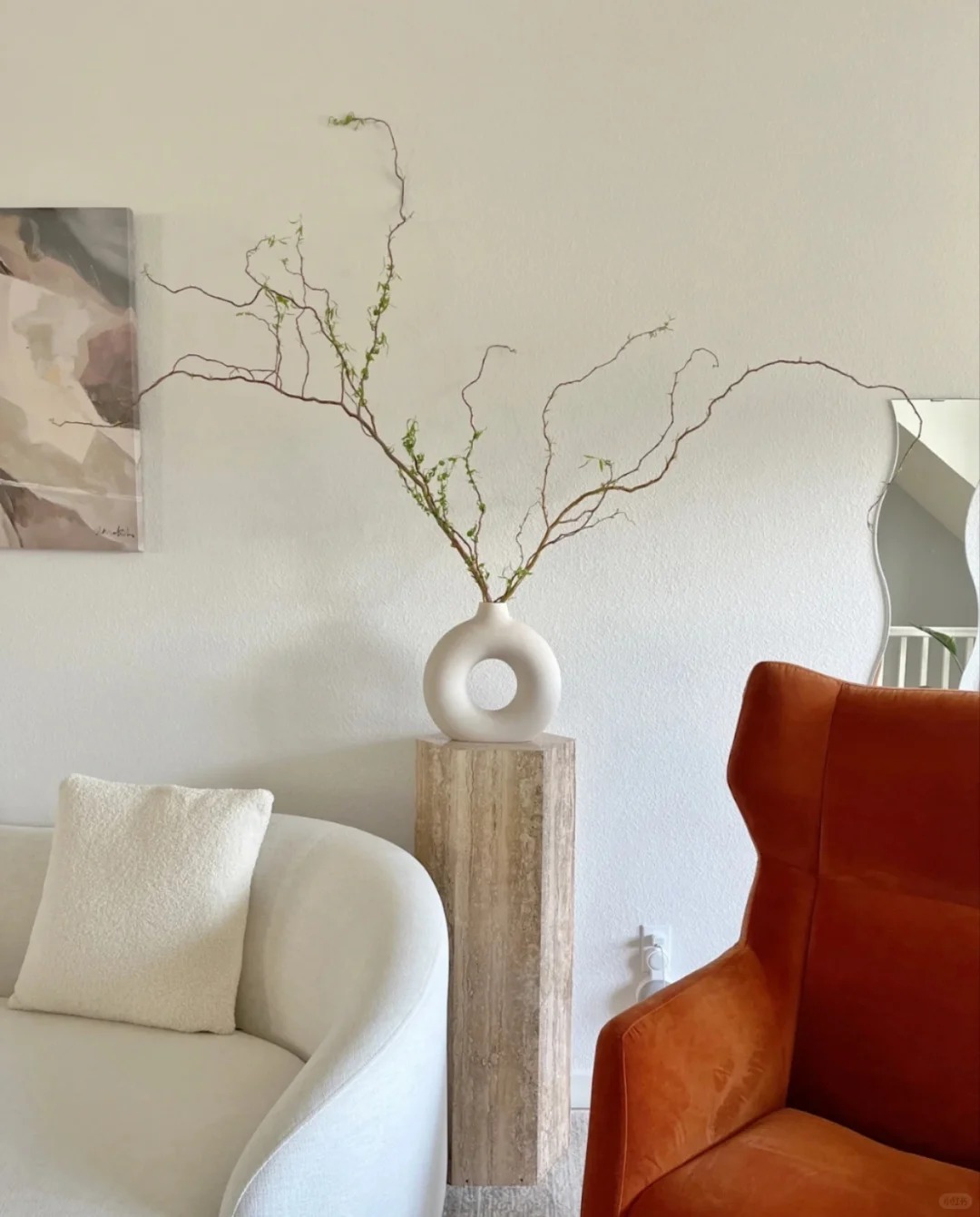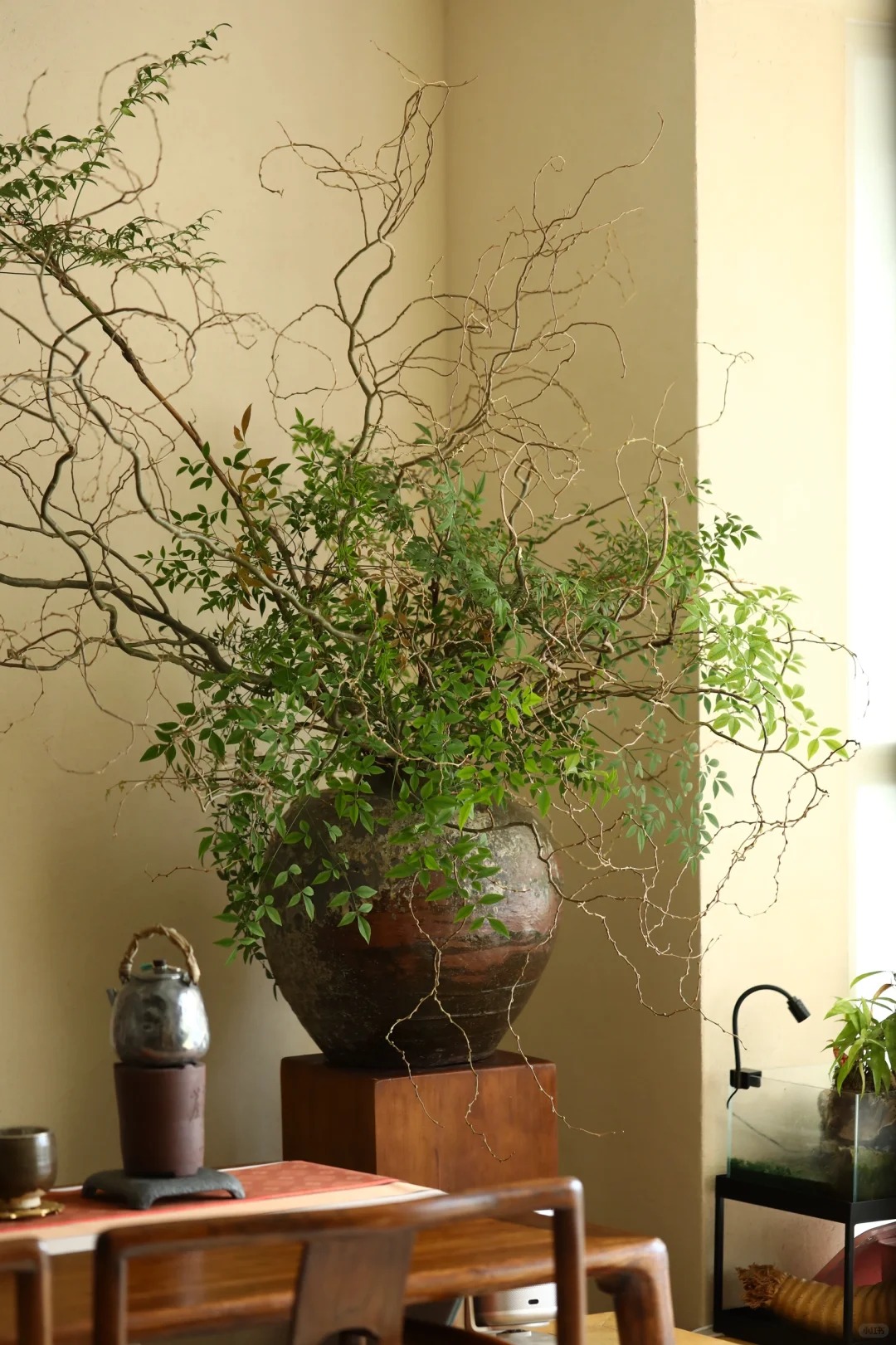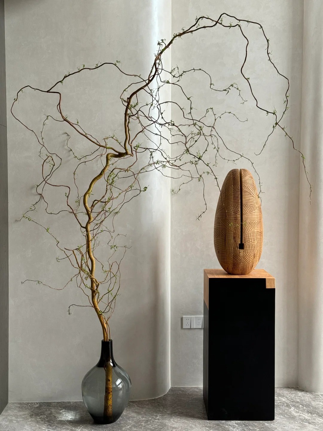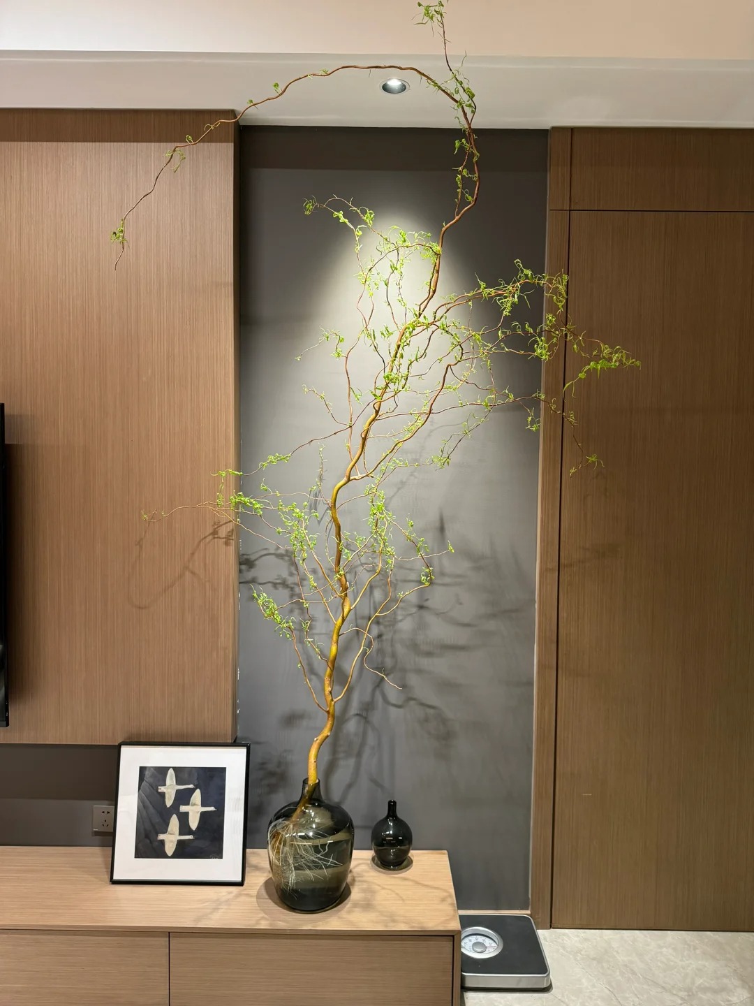 Chính nhờ dáng vẻ độc bản ấy mà Liễu Rồng trở thành "chân ái" cho những ai yêu thích phong cách tối giản (Minimalism), Wabi Sabi hay phong cách Á Đông (Indochine). Bạn chẳng cần phải là một nghệ nhân cắm hoa tài ba, chỉ cần thả vài cành Liễu vào một chiếc bình gốm mộc hay bình thủy tinh trơn, đặt ở góc phòng khách, bàn trà hay kệ sách, không gian lập tức trở nên có chiều sâu và "nghệ" hơn hẳn. Những đường cong của Liễu Rồng như phá vỡ sự cứng nhắc của những bức tường, những món đồ nội thất vuông vức, mang lại cảm giác mềm mại và thư thái cho gia chủ.