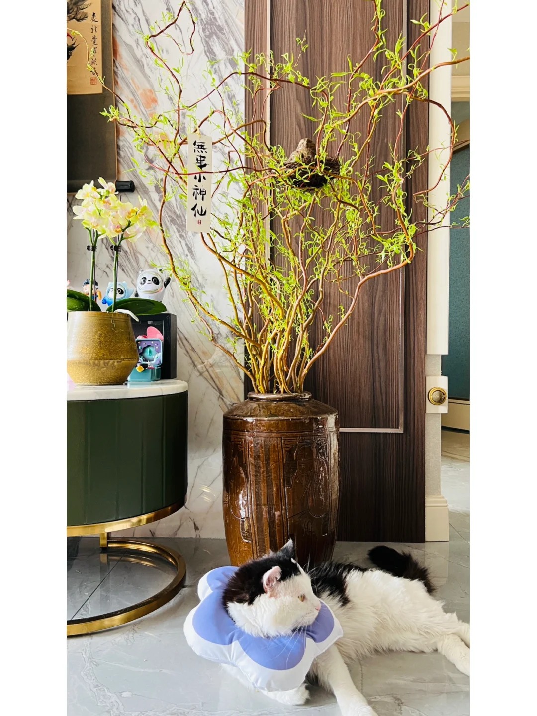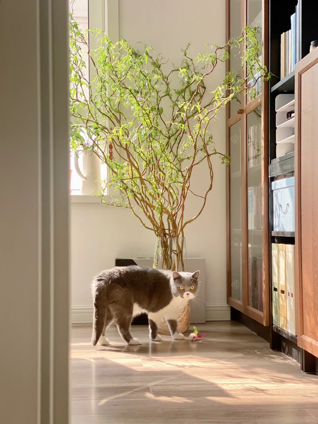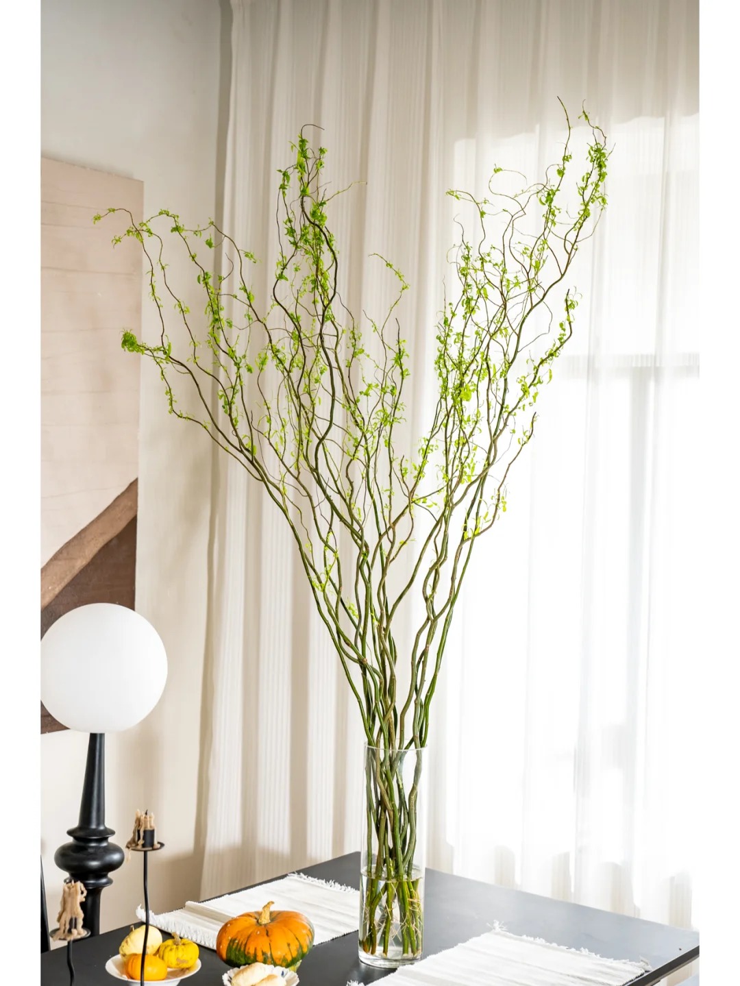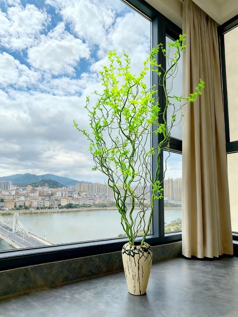 Nếu muốn lá nhanh ra và xanh tốt, hãy đặt bình hoa ở nơi có ánh sáng tán xạ, thoáng gió. Tránh ánh nắng gay gắt trực tiếp chiếu vào kẻo làm cháy những chồi non mới nhú. Về kích thước, Liễu Rồng thường khá cao (từ 1m đến hơn 2m), vì vậy nếu nhà chung cư trần thấp, bạn nên cân nhắc mua loại dài vừa phải hoặc cắt bớt để tránh cảm giác chật chội. Một chiếc bình cao, miệng nhỏ sẽ giúp giữ dáng cành tốt hơn.