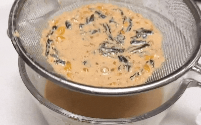 Cuối cùng, lọc bỏ xác trà, giữ lại phần nước trà sữa cam sóng sánh. Vậy là xong, một ly trà sữa cam thơm đúng nghĩa “nhà làm” đã sẵn sàng.
