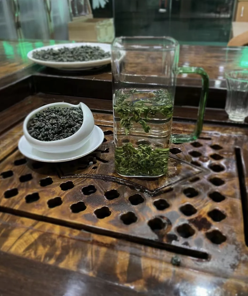 Cuối cùng, để khép lại danh sách là sự hiện diện của Trà Lục Bảo Thạch (Green Gem) - một bước đột phá của trà Quý Châu. Phá vỡ lề thói chỉ dùng đọt non, loại trà này mạnh dạn sử dụng công thức một chồi đi kèm hai, ba lá non.