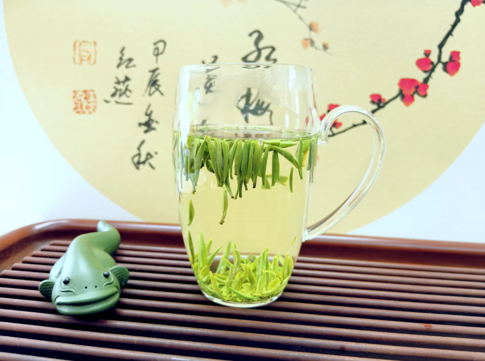Nối tiếp dư vị ấy là Mễ Đàm Thúy Nha (Meitan Cuiya) - một đại diện xuất sắc của dòng trà xanh dẹt vươn lên từ "biển trà Trung Hoa". Cánh trà mỏng, thẳng tắp và xanh mướt tựa như lưỡi chim sẻ, khi pha cho ra làn nước trong veo, vị tươi mát, hồi vị cực kỳ nhanh và lưu hương rất lâu.