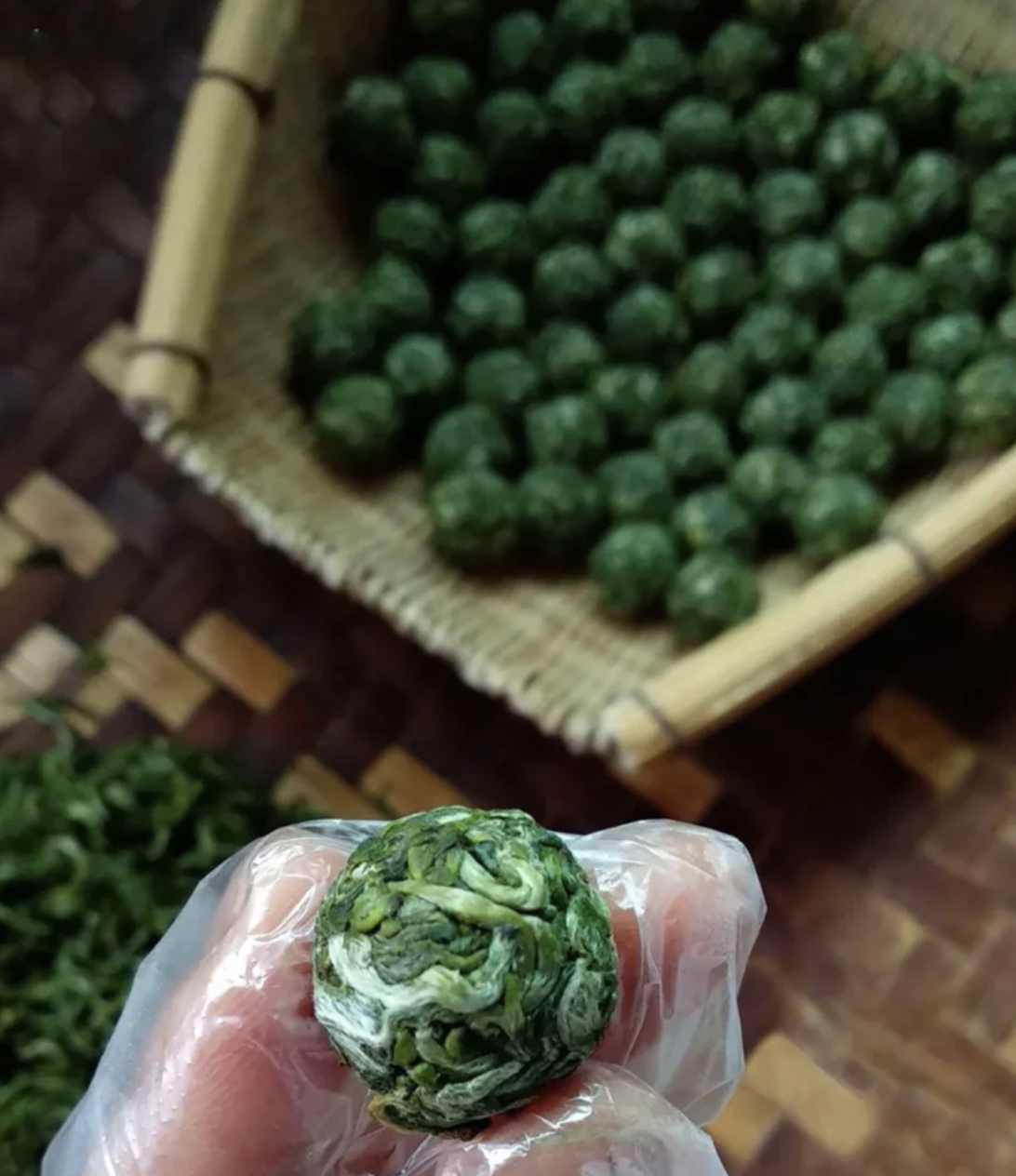 Ở một diễn biến thú vị khác mang đậm bản sắc vùng cao, Lôi Sơn Ngân Cầu (Leishan Yinqiu) lại mang đến trải nghiệm thưởng lãm đầy nghệ thuật. Trà được vò thủ công thành những viên bi tròn xoe nhỏ nhắn; khi thả vào nước nóng, viên trà từ từ bung nở duyên dáng, lan tỏa hương thơm ngát mang theo tình đất, tình người của đồng bào dân tộc Miêu.