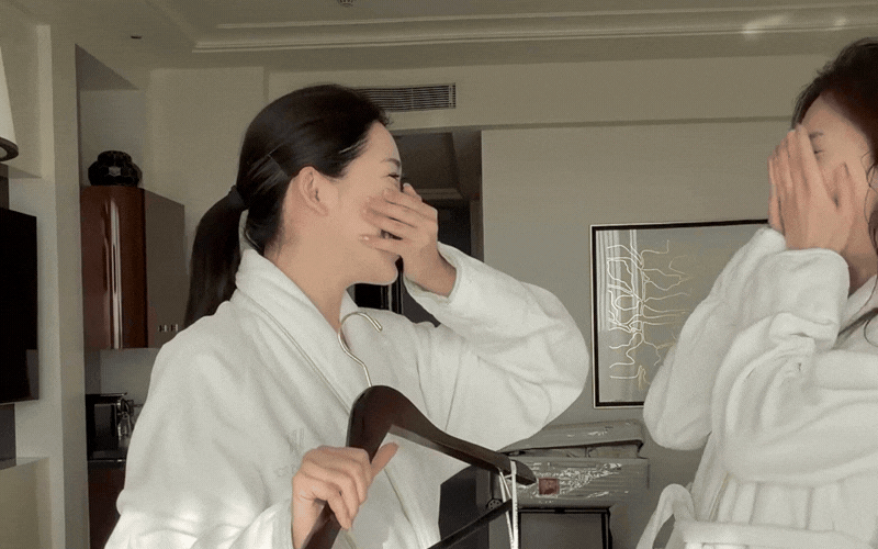 Sáng hôm ấy ở đất Mỹ, cô bạn 35 tuổi vẫn thức dậy với vẻ uể oải thường ngày, tay cầm bàn chải đánh răng trong bộ dạng ngái ngủ mà không hề biết một "cú sốc" ngọt ngào đang chờ đợi mình. Khi nhìn thấy Đào Hỷ Nhi bất ngờ xuất hiện và nhẹ nhàng đặt chiếc khăn voan cưới trắng tinh khôi lên đầu mình, cô ngơ ngác hỏi: "Làm gì đấy? Cậu đội gì trên đầu thế, là khăn voan cưới à?".