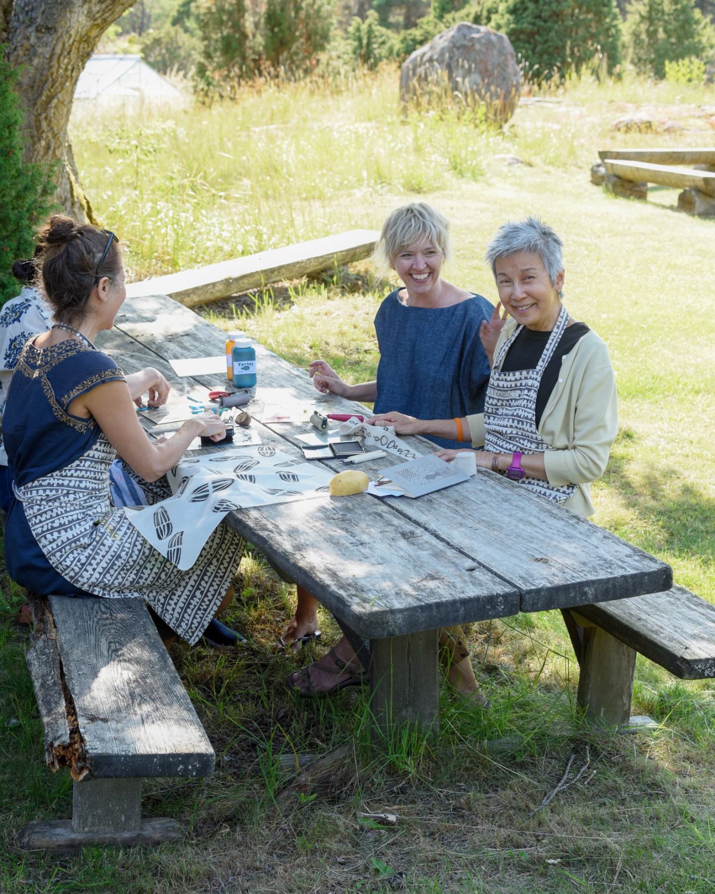 Những vị khách đến đây có thể dành trọn một ngày để vẽ, in mộc bản, hoặc chèo thuyền kayak, thư giãn và thưởng thức súp cá kem béo ngậy cùng quả mọng mùa hè. Trải nghiệm này đã giúp những người phụ nữ như bác sĩ nghỉ hưu Jonna Goulding mở ra cánh cửa đến với nhiều khóa học thủ công khác.