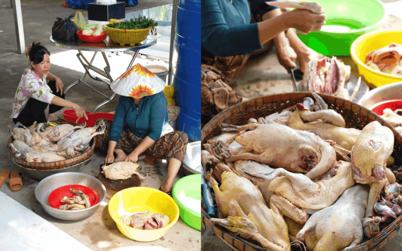 Bức tranh đám cưới miền Tây sẽ không thể trọn vẹn nếu thiếu đi không khí của gian bếp ngày nhóm họ. Khác hẳn với sự tiện lợi nhưng có phần xa cách của tiệc cưới nhà hàng, đám cưới ở quê Út vẫn giữ nếp sinh hoạt cũ: Cả làng cùng xúm vào làm cỗ. Từ sáng sớm, không khí đã tất bật với mấy chục con vịt do mẹ nuôi sẵn được đem ra chế biến. "Đầu bếp chính" không ai xa lạ mà chính là chị hai và dì bảy của Út.