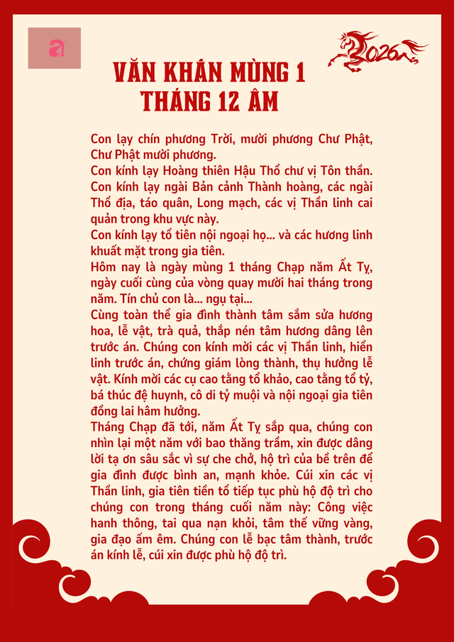 Hôm nay là ngày mùng 1 tháng Chạp năm Ất Tỵ, ngày cuối cùng của vòng quay mười hai tháng trong năm. Tín chủ con là... ngụ tại...