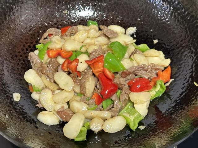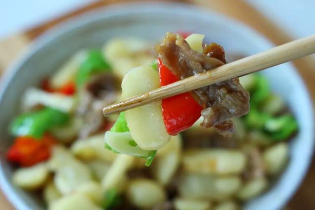 Nguyên liệu trong món ăn này tuy đơn giản nhưng được lựa chọn kỹ lưỡng. Củ năng đang vào mùa, sau khi gọt bỏ vỏ, củ năng trắng sạch, ngọt thanh, giòn tan, không hề thua kém bất kỳ loại rau củ nào. Thịt bò thì chọn miếng mềm, ướp gia vị trước, xào lên sẽ thơm phức, không hề bị khô. Thêm chút ớt chuông xanh, đỏ cho món ăn thêm phần hấp dẫn, trông thật bắt mắt. Sự kết hợp này không chỉ đẹp mắt mà còn bổ sung dinh dưỡng cho nhau - củ năng là nguồn cung cấp kali dồi dào và ít calo, trong khi thịt bò lại giàu protein chất lượng cao. Một bữa ăn như thế này vừa no bụng lại vừa không hề ngán, rất lý tưởng để bảo vệ sức khỏe trong mùa đông!