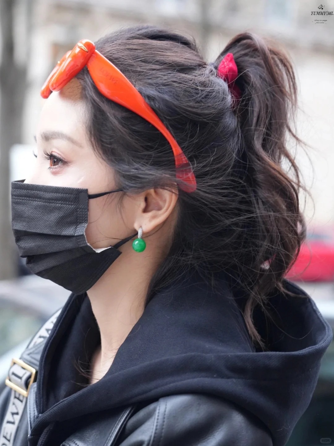 Để phá vỡ cảm giác nặng nề mà trang sức ngọc bích thường mang lại, bài toán đầu tiên cần giải quyết chính là màu sắc trang phục đi kèm. Nhìn vào những set đồ dạo phố gây bão của Dương Mịch, có thể dễ dàng nhận ra cô tuân thủ nghiêm ngặt quy tắc: Không để quá ba tông màu xuất hiện cùng lúc trên một tổng thể. Sự lựa chọn hoàn hảo nhất ở đây là bản phối kinh điển giữa đỏ, xanh lục và đen. Màu đen từ chiếc áo khoác da hầm hố đóng vai trò làm lớp nền trầm tĩnh, sắc lạnh, tạo ra một sân khấu hoàn hảo để sắc xanh rực rỡ của viên ngọc phỉ thúy được dịp bừng sáng mà không hề phô trương.