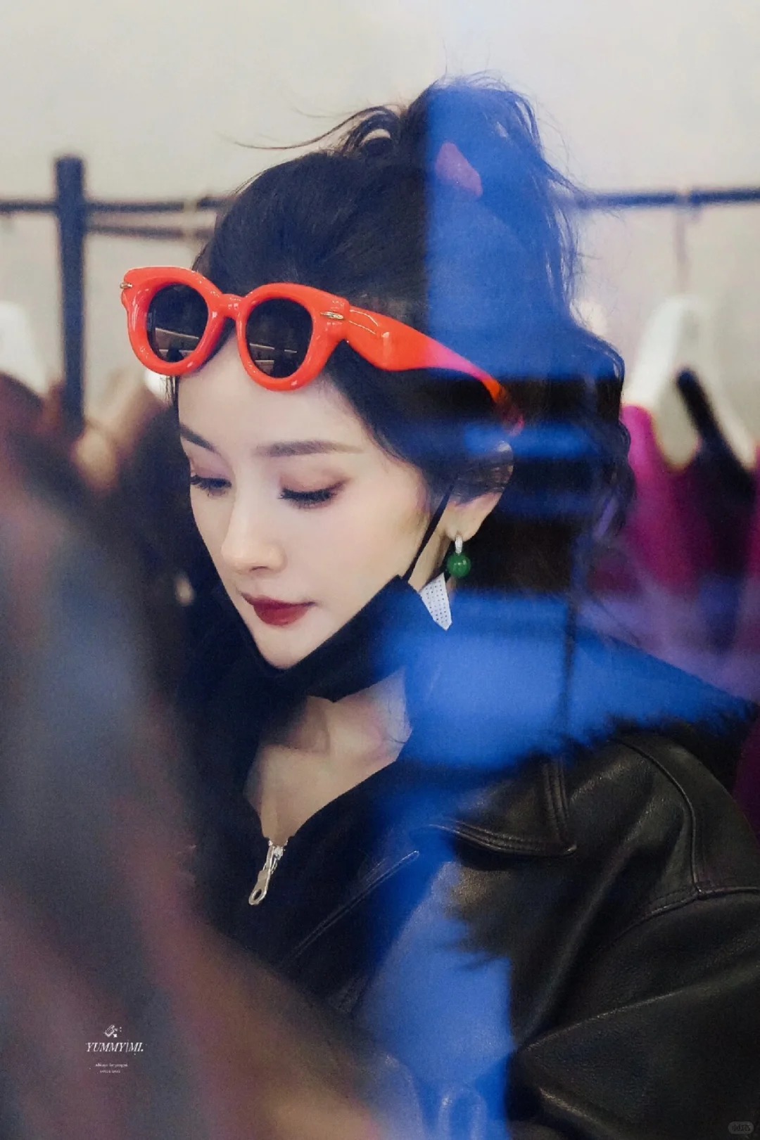 Có một chi tiết vô cùng đắt giá trong nghệ thuật mix-match mà ít ai để ý, đó chính là tính đồng nhất về hình khối. Đây là tiết tiết ẩn sâu nhưng lại đóng vai trò quyết định trong việc định hình phong cách. Hãy quan sát kỹ set đồ của Dương Mịch: Đôi hoa tai ngọc là hình tròn, mặt nhẫn cũng mang dáng dấp bo tròn mềm mại. Để tạo nên một đường dây liên kết vô hình, cô không chọn những chiếc kính râm gọng vuông hay gọng mắt mèo góc cạnh quen thuộc, mà thay vào đó là một chiếc kính râm với phần gọng bo tròn. Sự lặp lại có chủ đích của các đường cong mềm mại này chính là chìa khóa giúp tổng thể trở nên trơn tru, nịnh mắt.
