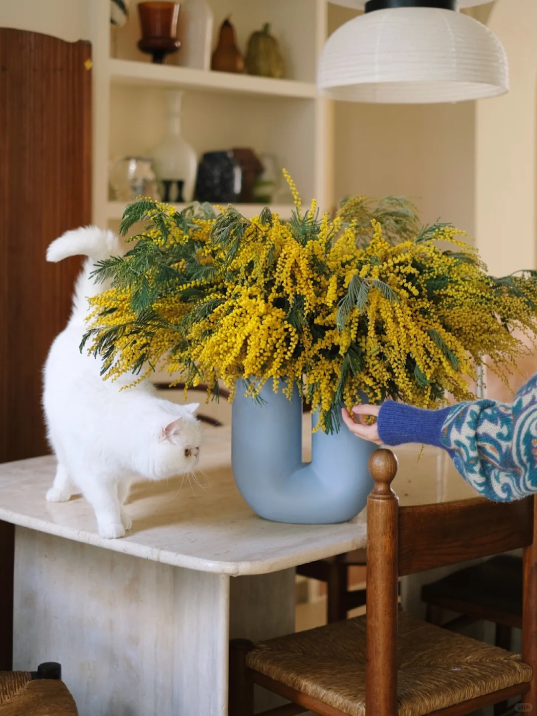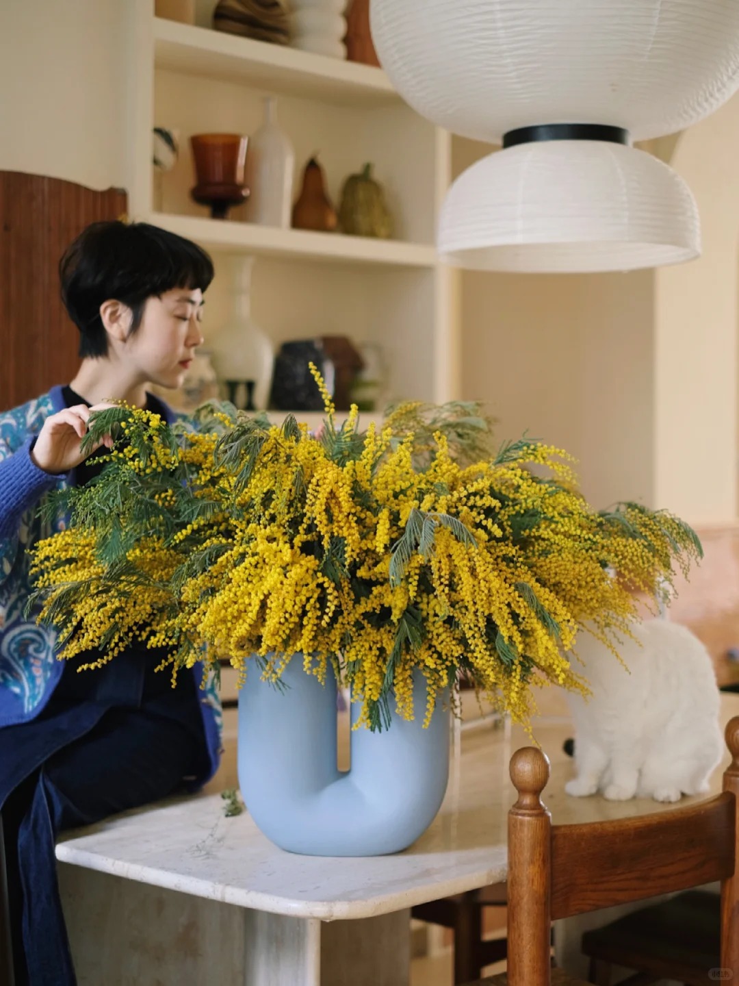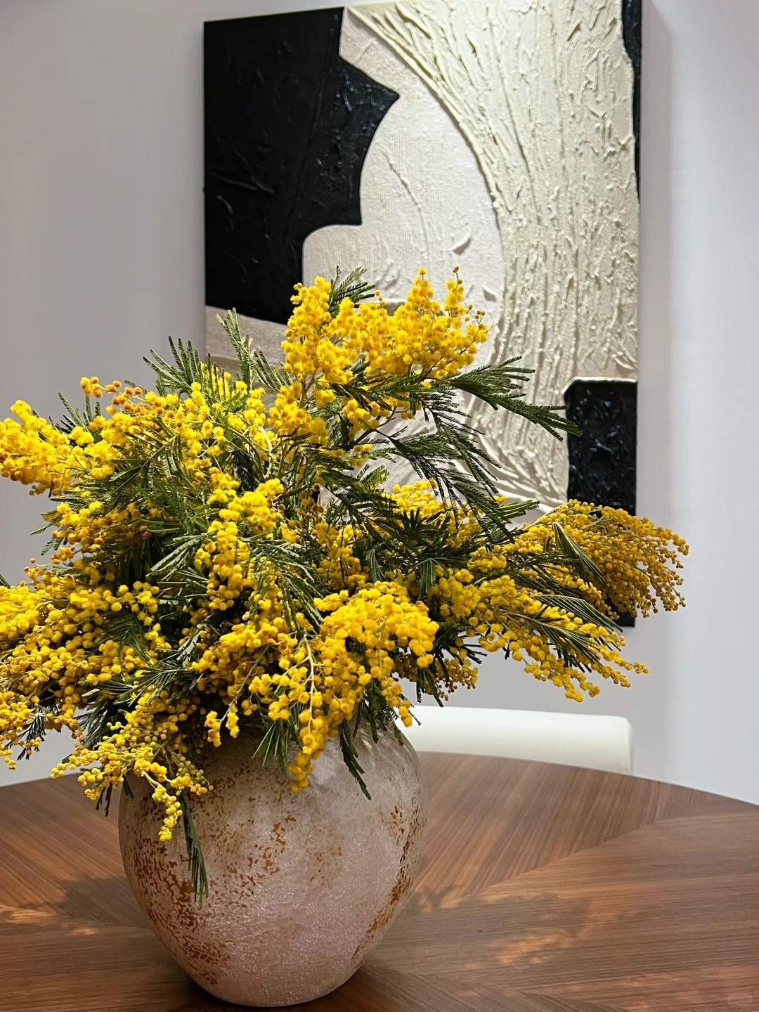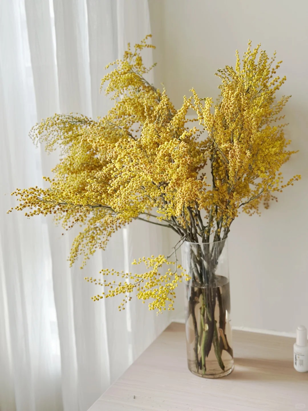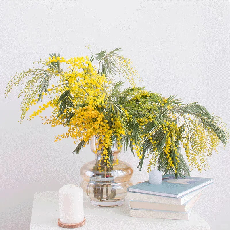 Khác với vẻ đẹp đằm thắm, cổ điển của hoa thược dược hay hoa lay ơn, mimosa mang một nét đẹp rất "Tây", phóng khoáng và hiện đại. Dù nhà bạn theo phong cách tối giản (Minimalism), Bắc Âu (Scandinavia) hay Indochine hoài cổ, một bình mimosa đều có thể trở thành điểm nhấn đắt giá của không gian.