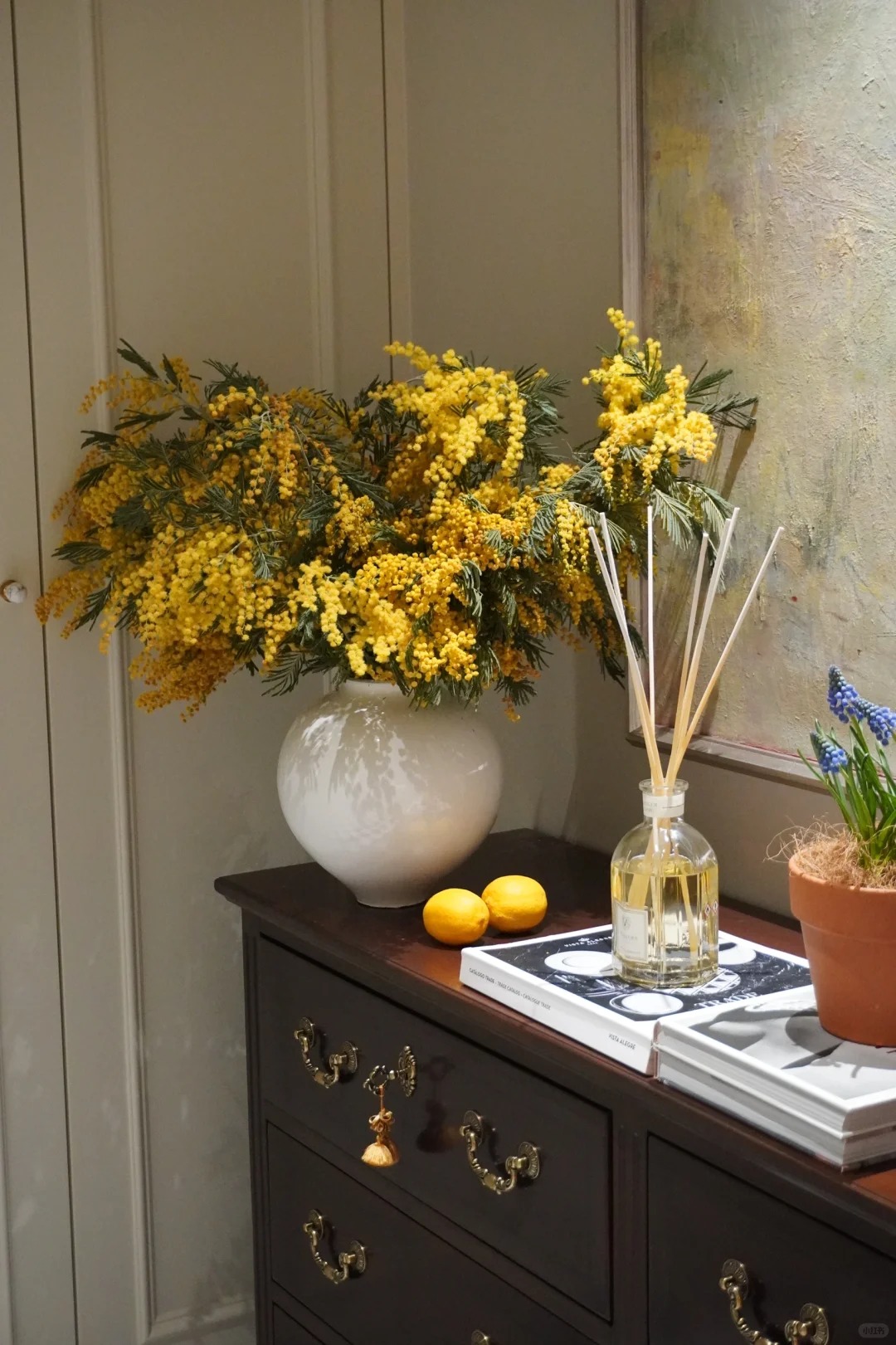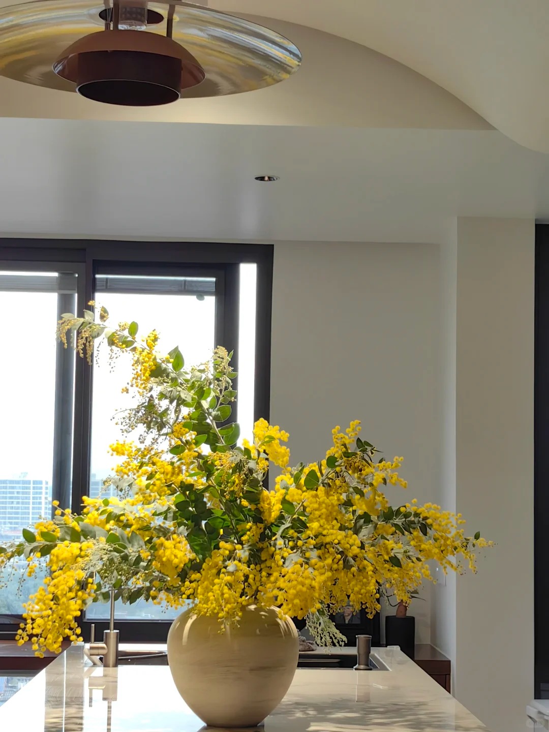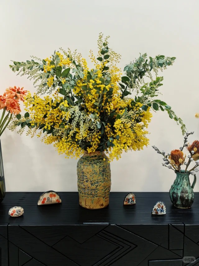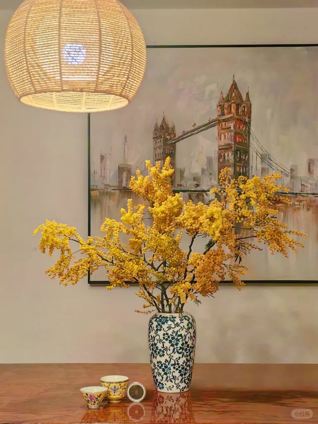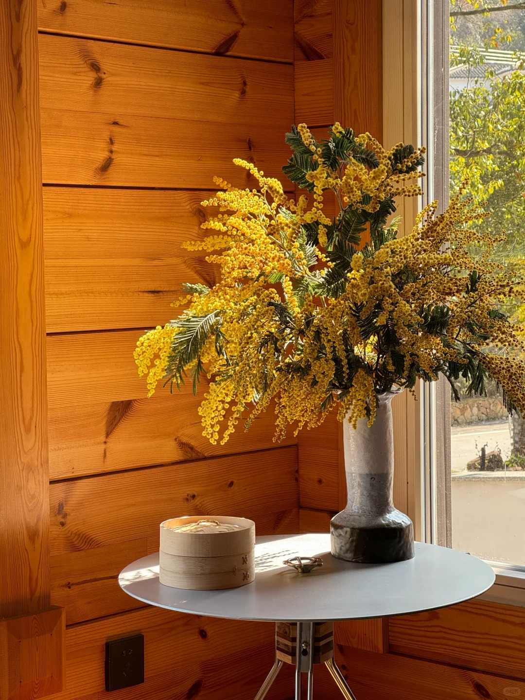 Khác với vẻ đẹp đằm thắm, cổ điển của hoa thược dược hay hoa lay ơn, mimosa mang một nét đẹp rất "Tây", phóng khoáng và hiện đại. Dù nhà bạn theo phong cách tối giản (Minimalism), Bắc Âu (Scandinavia) hay Indochine hoài cổ, một bình mimosa đều có thể trở thành điểm nhấn đắt giá của không gian.
