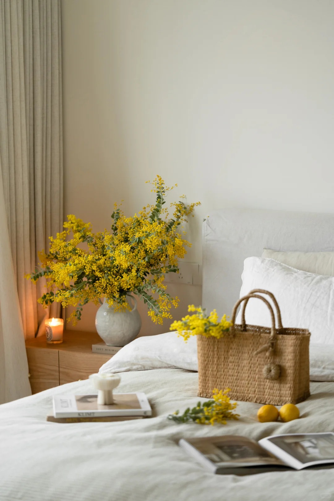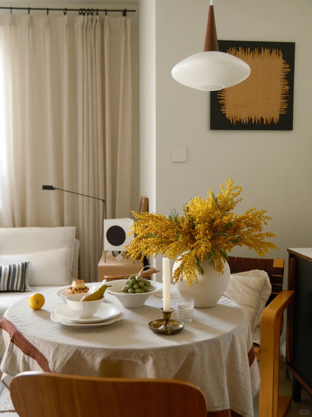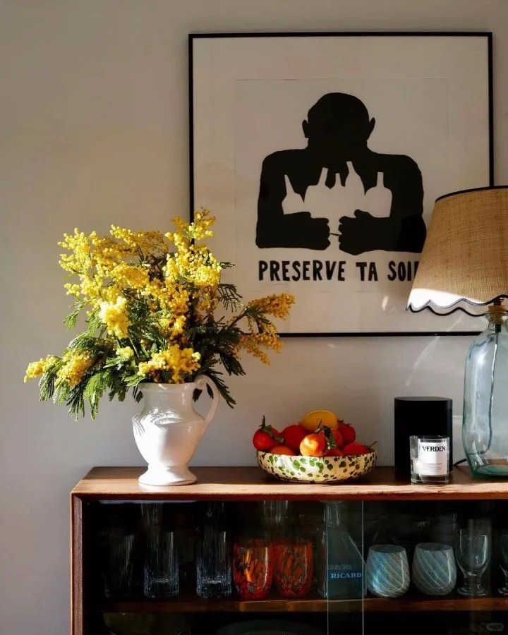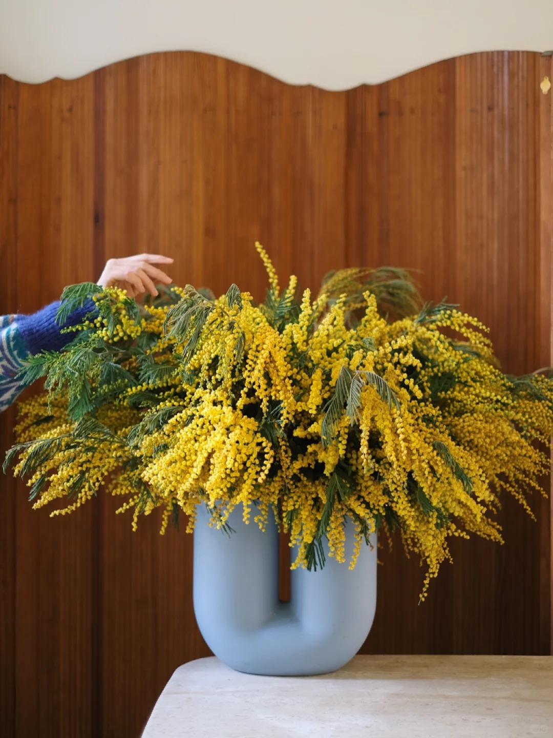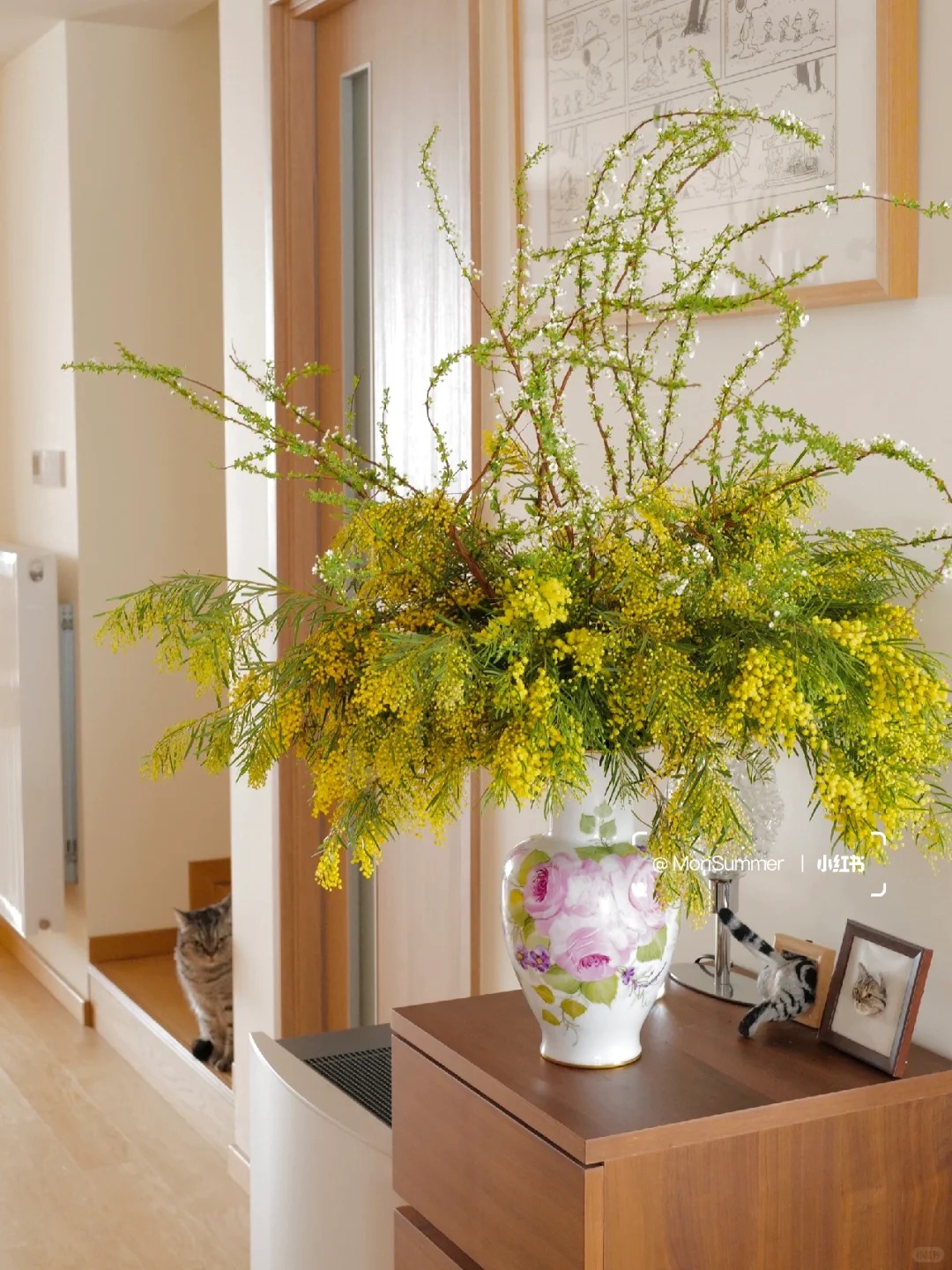 Khác với vẻ đẹp đằm thắm, cổ điển của hoa thược dược hay hoa lay ơn, mimosa mang một nét đẹp rất "Tây", phóng khoáng và hiện đại. Dù nhà bạn theo phong cách tối giản (Minimalism), Bắc Âu (Scandinavia) hay Indochine hoài cổ, một bình mimosa đều có thể trở thành điểm nhấn đắt giá của không gian.