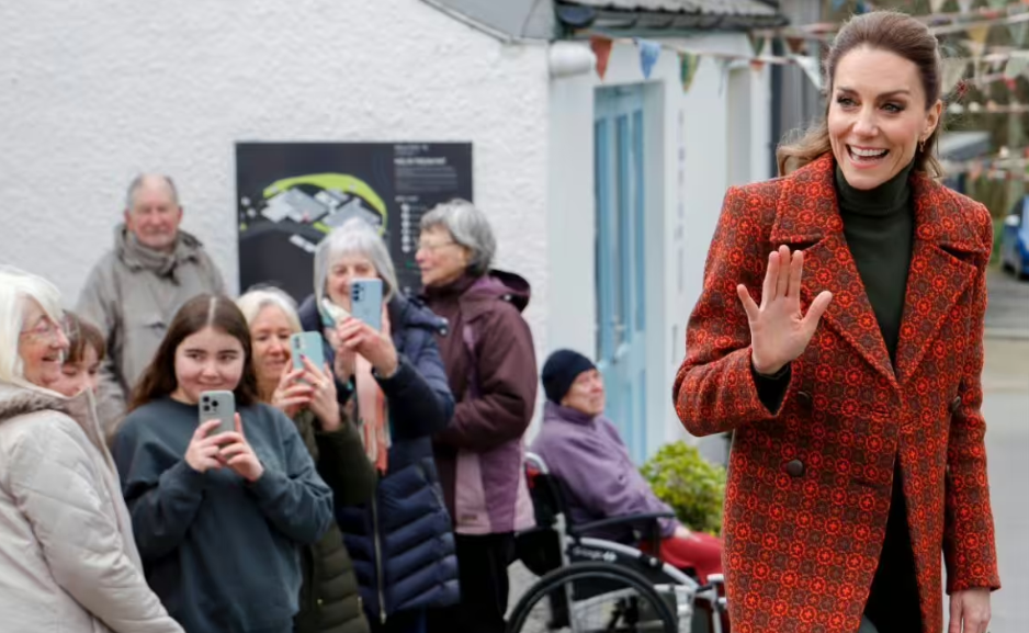 Mái tóc nâu bồng bềnh được buộc nửa đầu dịu dàng, kết hợp cùng kiểu trang điểm mắt khói quyến rũ, tất cả tạo nên một tổng thể hoàn hảo. Tuy nhiên, điều khiến bộ trang phục này trở nên đặc biệt không nằm ở nhãn hiệu hay giá tiền, mà nằm ở nguồn gốc của nó. Giới mộ điệu tin rằng chiếc áo khoác này là một thiết kế "đo ni đóng giày", được may từ chính những thớ vải dệt tại xưởng Melin Tregwynt mà cô đang ghé thăm. Một sự lựa chọn trang phục không thể tinh tế hơn: Kate không chỉ mặc đẹp, cô đang "mặc" lên mình niềm tự hào của địa phương, biến thời trang thành lời tri ân chân thành nhất gửi đến những người thợ thủ công nơi đây.