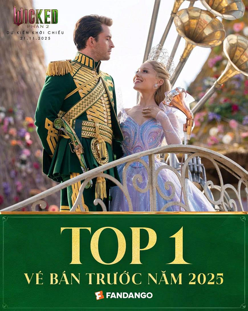 Đặc biệt, mới đây bộ phim đã trở thành tác phẩm có số lượng vé đặt trước cao nhất năm 2025 trên nền tảng Fandango (Mỹ), vượt qua hàng loạt bom tấn cùng năm. Không dừng lại ở đó, Wicked: Phần 2 còn góp mặt trong top 10 phim có doanh thu mở bán ngày đầu cao nhất mọi thời đại trên nền tảng này, sánh vai cùng những huyền thoại phòng vé như Star Wars, Avengers: Endgame hay Spider-Man: No Way Home.