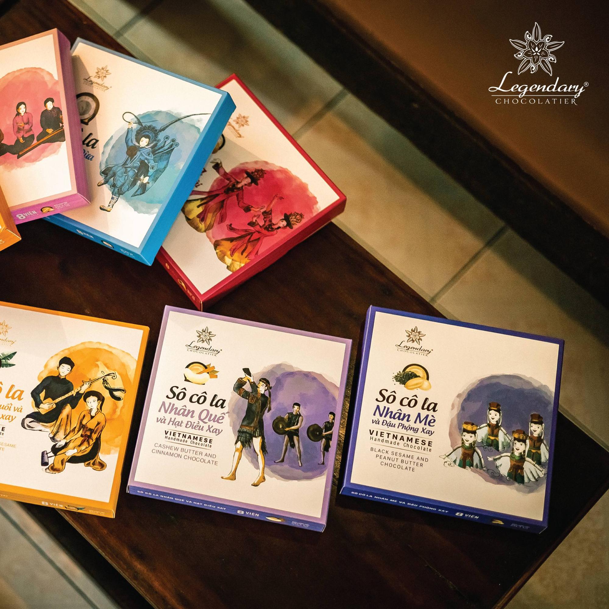 Thêm một cái tên khác mà tôi muốn kể, đó là Legendary. Họ có dòng socola Zoom Việt Nam. Không chỉ là các mùi vị ấn tượng như rượu dừa, rượu xoài, mè - chuối - đậu phộng, quế - hạt điều... họ còn dùng socola để kể về các loại hình nghệ thuật truyền thống và văn hoá của Việt Nam, điển hình là đờn ca tài tử, múa rối nước, ca trù, múa bóng rỗi... Hay Alluvia Chocolate - được bếp trưởng của khách sạn 5 sao Sofitel Legend Metropole Hanoi tin chọn để kết thúc bữa ăn sang trọng. Mekong Cocoa gói câu chuyện Việt trong từng lớp vị. Và còn Stone Hill, Savie, Belvie… cũng là những thương hiệu socola Made in Vietnam được khách hàng trong và ngoài nước mê mẩn.