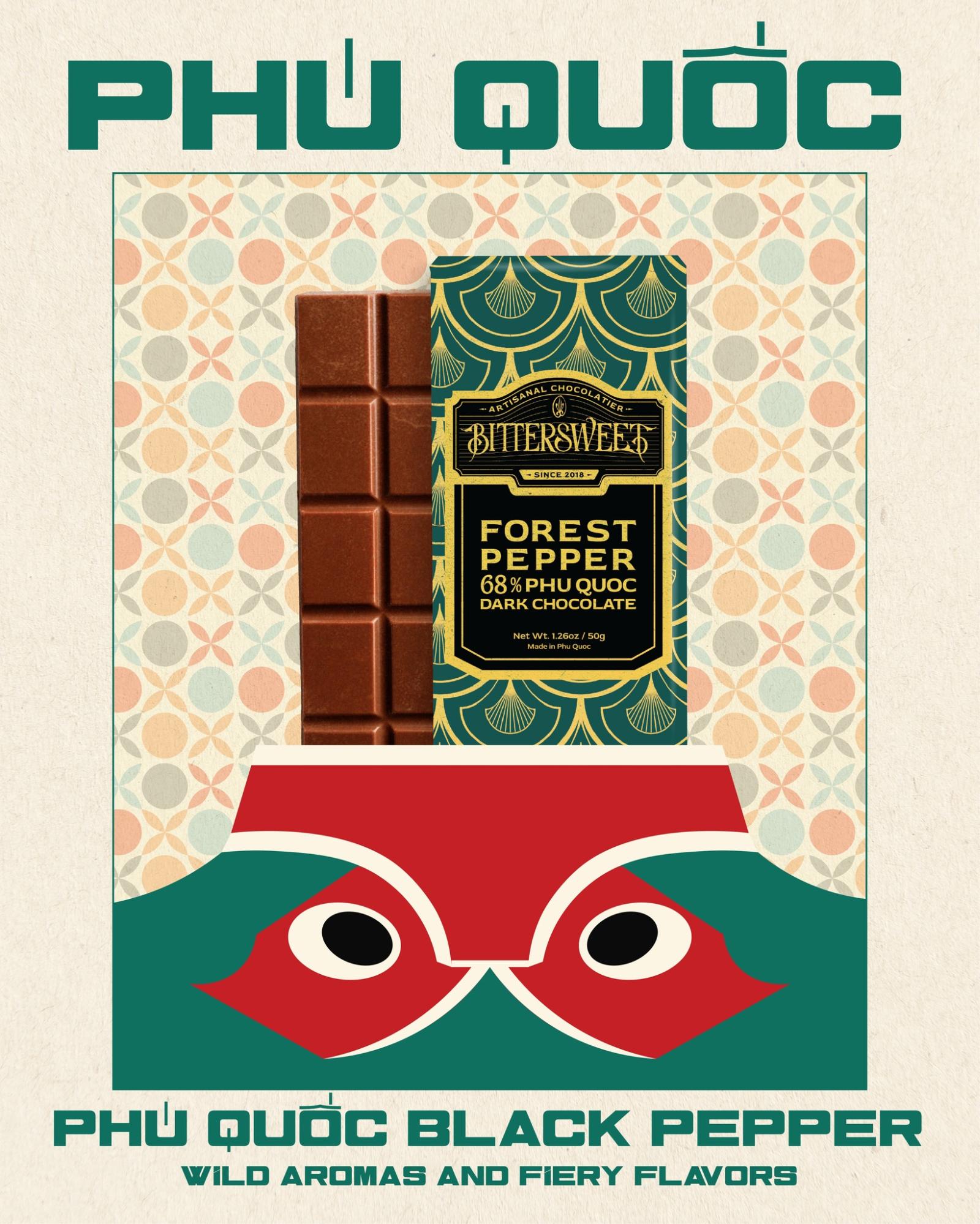 Ví dụ như thanh socola muối truffle mà tôi mê mẩn, tầng hương truffle được họ giấu kín, phải khi ăn xong xuôi, không còn chút socola nào ở trong miệng thì lúc này hương truffle mới bung ra, bao trọn khoang miệng. Hay thanh socola tiêu rừng Phú Quốc cũng thú vị không kém: Những nốt hương từ sả, gừng và cỏ chanh len lỏi tinh tế trong từng miếng socola không hiện trong khoang miệng mà lại bay thẳng lên đầu mũi tạo nên một trải nghiệm vừa cay nồng, vừa thanh mát, đầy bất ngờ.