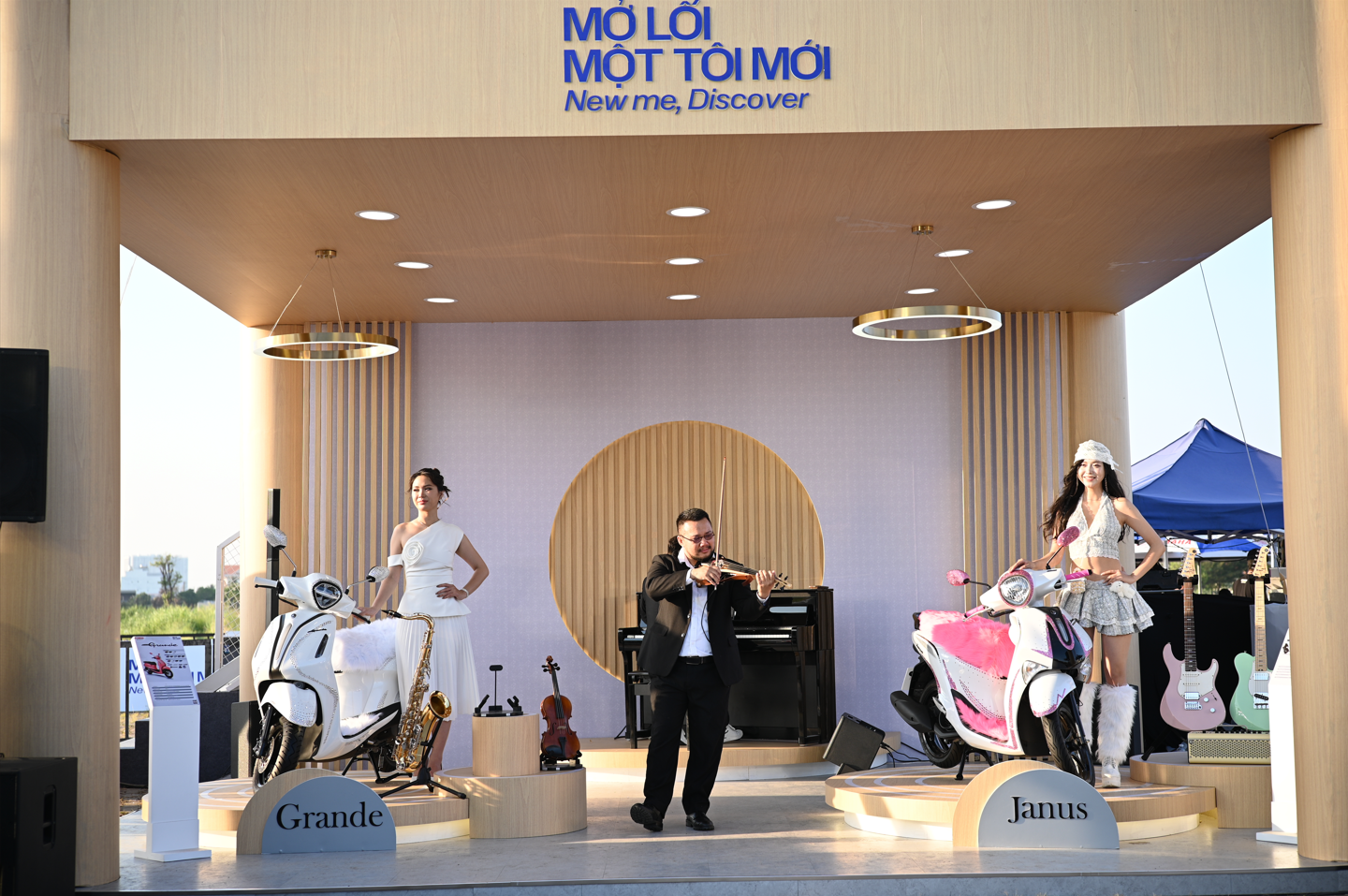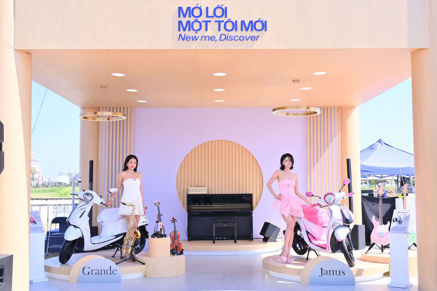 Điểm khác biệt lớn nhất trong cách Yamaha Motor Việt Nam xuất hiện tại sự kiện năm nay nằm ở cách thương hiệu đặt sản phẩm vào bối cảnh. Không còn đơn thuần là những chiếc xe máy phục vụ nhu cầu di chuyển trong đời sống hàng ngày, Yamaha Janus và Yamaha Grande được đưa vào một không gian mang đậm tinh thần thời trang Nhật Bản, nơi ánh sáng, bố cục và trải nghiệm đều được thiết kế như một studio chuyên nghiệp.